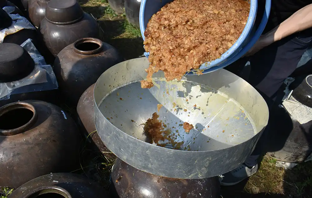 甕壷には天然の酵母や酢酸菌が住んでおり、