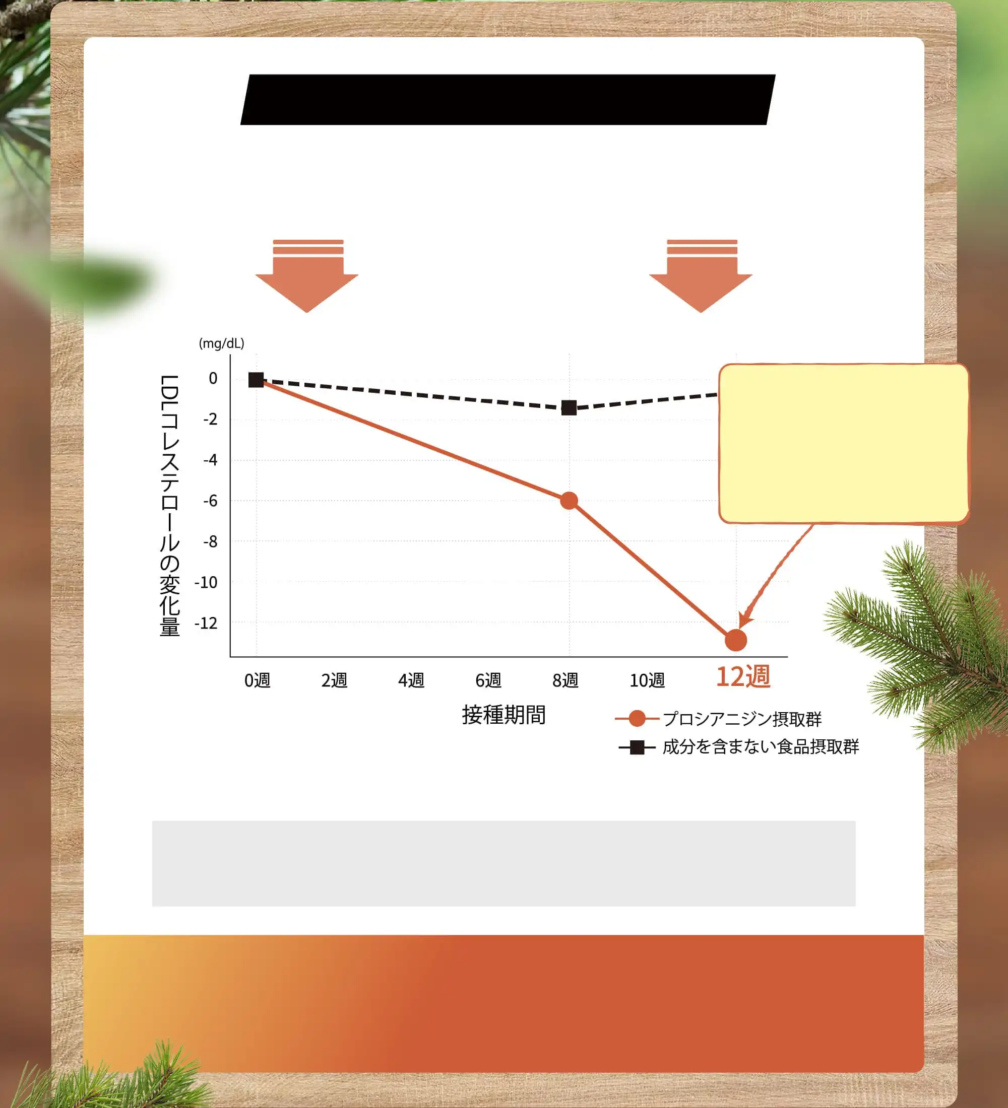 ※成分を含まない食品摂取群とは、機能性関与成分(プロシアニジン)を含まないプラセボ食品を摂取したグループのことです。※研究レビュー採用論文のうち、代表的な1報のデータに基づき作成。本製品を用いた試験結果ではありません。